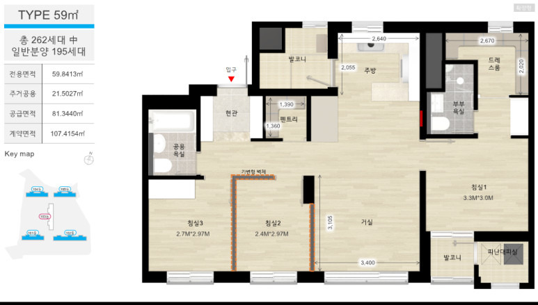 주거 선호도 높은 59㎡, 84㎡ 구성