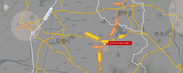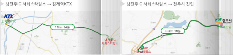 김제역 KTX 차량 14분 (11km), 전주시 진입 차량 10분 (6.6km)