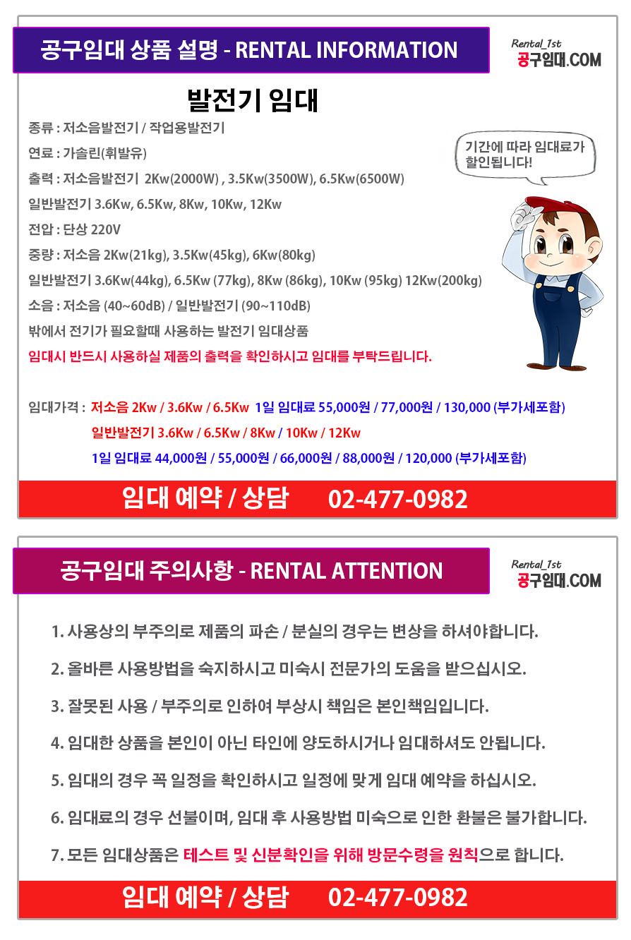 발전기 임대와 다른 작업공구 및 장비 임대도 28년 노하우 공구임대 카페에서 해결하셔요!