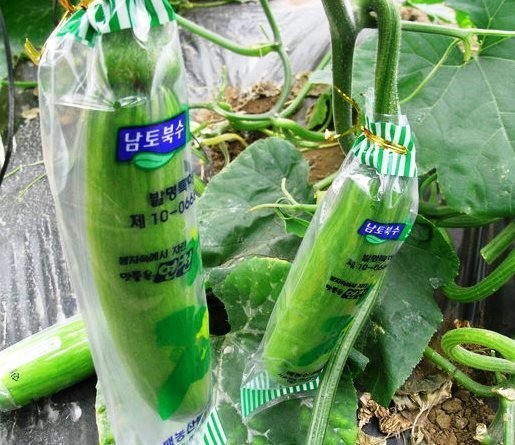 이 봉투는 오이나 마디호박이 자라기 전에 미리봉투에 넣어 재배하는 것으로,