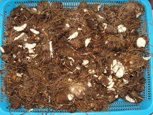 ▶늦가을에 서리가 내린 다음 뿌리를 캐서 줄기를 버리고 물에 씻어 햇볕에 말린다.