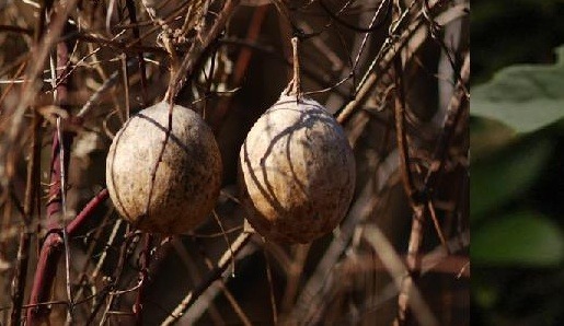 노랗게 익은 주먹만한 열매와 이 덩굴의 땅 속에 있는 뿌리를 약으로 쓴다.
