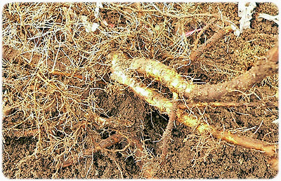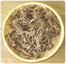 고본은 고르지 않게 갈라진 긴 원주형이고 뿌리 윗부분에는 줄기의 일부가 남아 있다. 바깥면이