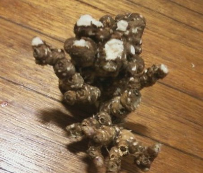굵고 덩어리로 이뤄진 뿌리의 겉껍질을 벗기면 이것을 백출이라고 한다.