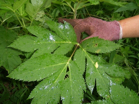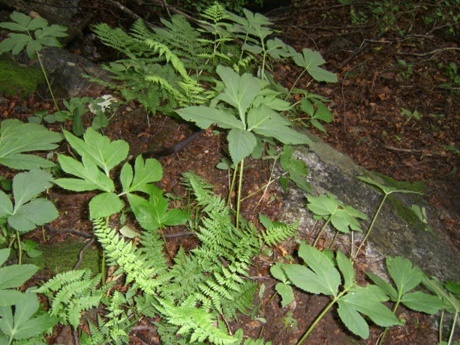 참당귀의 잎(아래로 뻗은 3개의 잎이 하나로 붙어 있음)