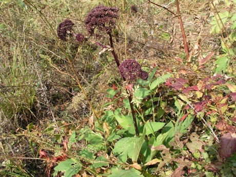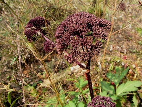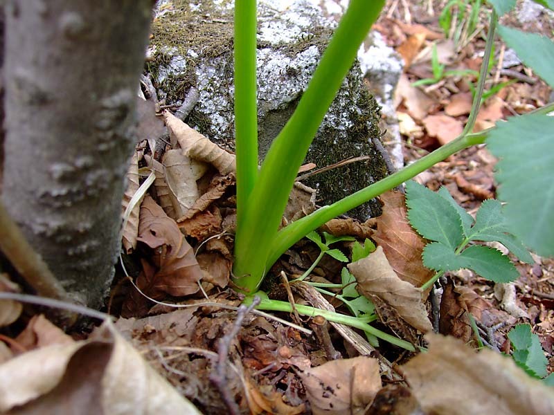 지리강활(개당귀)의 줄기(줄기가 갈라지는 곳이 붉은 색, 줄기 자체는 녹색)