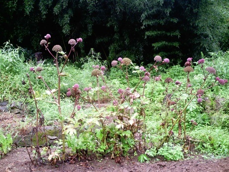 | 참당귀 <朝鮮當歸 > 학명 : Angelica gigas Nakai 과명 : 산형과 생지 : 산골짝 냇가 근처에서 자란다. 당귀- 전국적으로 재배가능하나 중부 이북지역의 서늘한 고산지역 일당귀- 따뜻한 중·남부지방에서 재배 충분한 광선을 요하며, 노지에서 월동하고 16-30℃에서 잘 자란다. 이 작물은 연작을 싫어하므로 한번 심어서 수확한 곳에는 2-3년동안 다른 작물을 심는 것이 좋다 성분 : 뿌리- decursin, decursinol, 과실- imperatorin. 분포 : 만주, 일본에 분포한다. 남부, 중부, 북부의 산계곡 습기가 있는 토양에서 자생하며 약용식물로 재배하고 있다. 약효 : 當歸(뿌리)-祛風, 和血, 補血, 驅瘀血, 調經, 鎭靜의 효능. 관절통, 신체허약, 두통, 眩暈, 월경불순, 복통, 跌打損傷, 腸燥便秘, 捻挫를 치료. 개화 : 8-9월. 자주색 번식 : 비옥한 땅에 파종하여 당년에 수확할 목적으로 직파를 한다. 파종은 봄에도 할 수 있지만 가을에 하는 것이 유리하다. 유사종 : 흰꽃바디나물. 개구릿대. 흰 바디나물. 제주사약채. 갯강활.궁궁이 특징 : 키가 큰 것이 결점이나, 쓰러지지는 않는다. 엽병을 생으로 까서 먹고 한참 있다가 물을 마시면 물맛이 달다 부인들의 성약 당귀 ‘당귀’라는 이름은 중국의 옛 풍습에서 유래되었다. 옛날 중국의 부인들은 남편이 싸움터에 나갈 때 당귀를 품속에 지니고 있게 하여 남편이 무사히 돌아오기를 기원하였다. 전쟁터에서 기력이 다하여 죽게되었을 때 당귀를 달여 먹으면 다시 기운이 회복되어 돌아올 수 있다고 믿었기 때문이다. 그래서 당귀(當歸)의 의미는‘마땅히 돌아온다’는 뜻이다. 당귀는 대표적인 보혈제로 특히 부인들에게는 성약(聖藥)이라 할 만한 약초다. 팔다리와 허리의 냉증, 생리불순이나 생리통, 히스테리, 갱년기 장애, 두통, 빈혈 등에 두루 좋은 효과가 있다. 자궁을 튼튼하게 하고 몸의 물질 대사 및 내분비 기능을 활발하게 할 뿐만 아니라 혈액 순환을 좋게 하므로 체질이 허약한 사람이나 임신이 잘 안 되는 사람, 심장이 약한 사람한테도 좋다. 당귀는 아픈 사람은 말할 것도 없고 건강한 사람도 늘 차로 먹으면 몸이 가벼워지고 마음이 안정되며 오래 살 수 있게 된다. 완하 작용도 있어서 변비를 치료하는데 효력이 크며 당뇨병의 혈당치를 낮추는 작용도 한다. 당귀를 먹고 나면 그 향이 오랫동안 입 안에 남아 있으며 물을 마시면 물이 꿀처럼 달게 느껴지는 것이다. 이런 성질 때문에 당귀는 식욕을 좋게 하는 약으로 쓰인다. 요즘 한약방이나 한의원에서 볼 수 있는 당귀는 거의 모두 재배한 것이거나 수입한 것들이다. 재배하는 당귀는 품종이 우리나라에서 나는 야생종이 아니라 중국이나 일본에서 씨앗을 가져다가 농약과 비료를 주고 키운 것이므로 야생 당귀와 같은 향기가 나지도 않을 뿐만 아니라 약효도 형편없이 낮다. 어찌 야생 당귀 한 포기를 재배 당귀 100포기와 비교할 수 있으랴. 당귀로 질병을 치료하는 방법 ① 고혈압 당귀, 오미자 각 20그램, 작약, 감국 4그램을 물엿처럼 되게 달여서 60그램이 되게 만든다. 이것을 한 번에 20그램씩 하루 세 번 밥 먹고 나서 30분 뒤에 먹는다. 효과가 잘 나타나지 않으면 차츰 양을 늘려 나간다. ② 정신불열증 만병초와 당귀를 4:1의 비율로 섞어서 물로 달여 아침 먹기 전에 먹는다. 약을 먹고 나서 20분이 지나면 심한 무기력 상태가 되었다가 네 시간쯤 지나면 깨어나는데 의식이 돌아오면 다시 정상으로 된다. 5~6개월 동안 치료한다. 일주일 정도 지나면 이상한 행동이나 의식 장애 증상이 줄어든다. 70퍼센트 이상이 치유되거나 호전된다. 당귀는 미나리과에 여러해살이 풀이다. 서늘하고 습윤한 기후를 좋아하며 습도가 비교적 높은 높은산 차가운 지대에 잘 자란다. 뿌리의 향기가 매우 좋다. 북한에서 펴낸 <동의학 사전>에서는 당귀에 관해서 이렇게 적고 있다. “당귀는 미나리과에 속하는 다년생 풀인 당귀의 뿌리를 말린 것이다. 각지의 깊은 산에서 자라며 또 널리 심는다. 가을에 줄기가 나오지 않은 당귀의 뿌리를 캐서 물에 씻어 햇볕에 말린다. 맛은 달고 매우며 성질은 따뜻하다. 심경, 간경, 비경에 작용한다. 혈을 생겨나게 하면서 잘 돌게 하고 월경을 고르게 하며 통증을 멈춘다. 또한 대변을 통하게 하고 출혈을 멈춘다. 약리실험에서 진정작용, 진통작용, 강압작용, 억균작용, 약한 이뇨작용, 이담작용 등이 밝혀졌다. 혈허증, 월경부조, 무월경, 징가, 산후복통, 타박상, 옹종, 변비, 이질, 비증, 등에 쓴다. 자궁발육부전, 신경쇠약, 자궁출혈 등에도 쓸 수 있다. 하루 6~12그램을 물로 달여서 먹거나 환을지어 또는 가루내거나 술로 담가 먹거나 고를 만들어 먹는다.” 당귀는 근육 관절통 및 신경통, 만성기관지염, 만성분강염, 월경병, 고혈압, 대상포진, 비염의 치료에 좋은 반응을 얻었다는 임상보고가 밝혀졌다. |