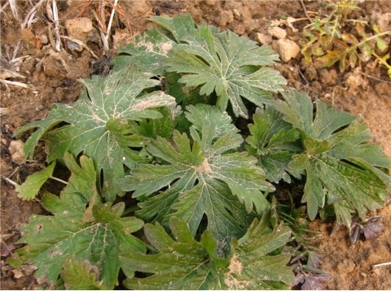 두해살이 풀로 첫해에는 심장형의 잎이 뿌리에 바짝 붙어 로제트로 나고, 다음해에 비로소 줄기를 올리고 적자색의 꽃을 피워 까맣게 익는 열매가 달린다.