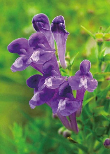 꼴로 끝이 입술모양으로 갈라져 있으면 윗입술은 구부러져 투구꼴 모양을 하고 있다.
