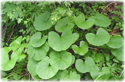 ②곤달비 ↓[곰취와 곤달비의 잎을 자세히 보면 하트(heart) 모양의 갈라지는부분이 곰취는 곡선으로 상당히 넓은가하면, 곤달비는 좁아서 거의 붙어있는 모양이다]