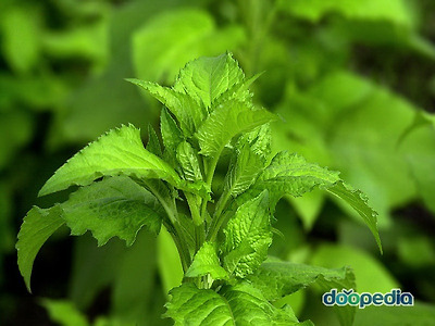 잎자루의 색은 동의는 녹색이고 곰취는 보라색을 띤다.