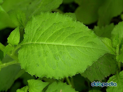 뿌리잎은 심장 모양으로 긴 꼭지가 있고, 가장자리에 규칙적인 톱니가 있다.