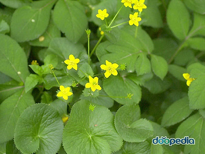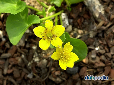 동의나물을 동이나물로 불리기도 하는데 이유는 둥근 잎사귀를 접으면 물 한 모금을 담을 수