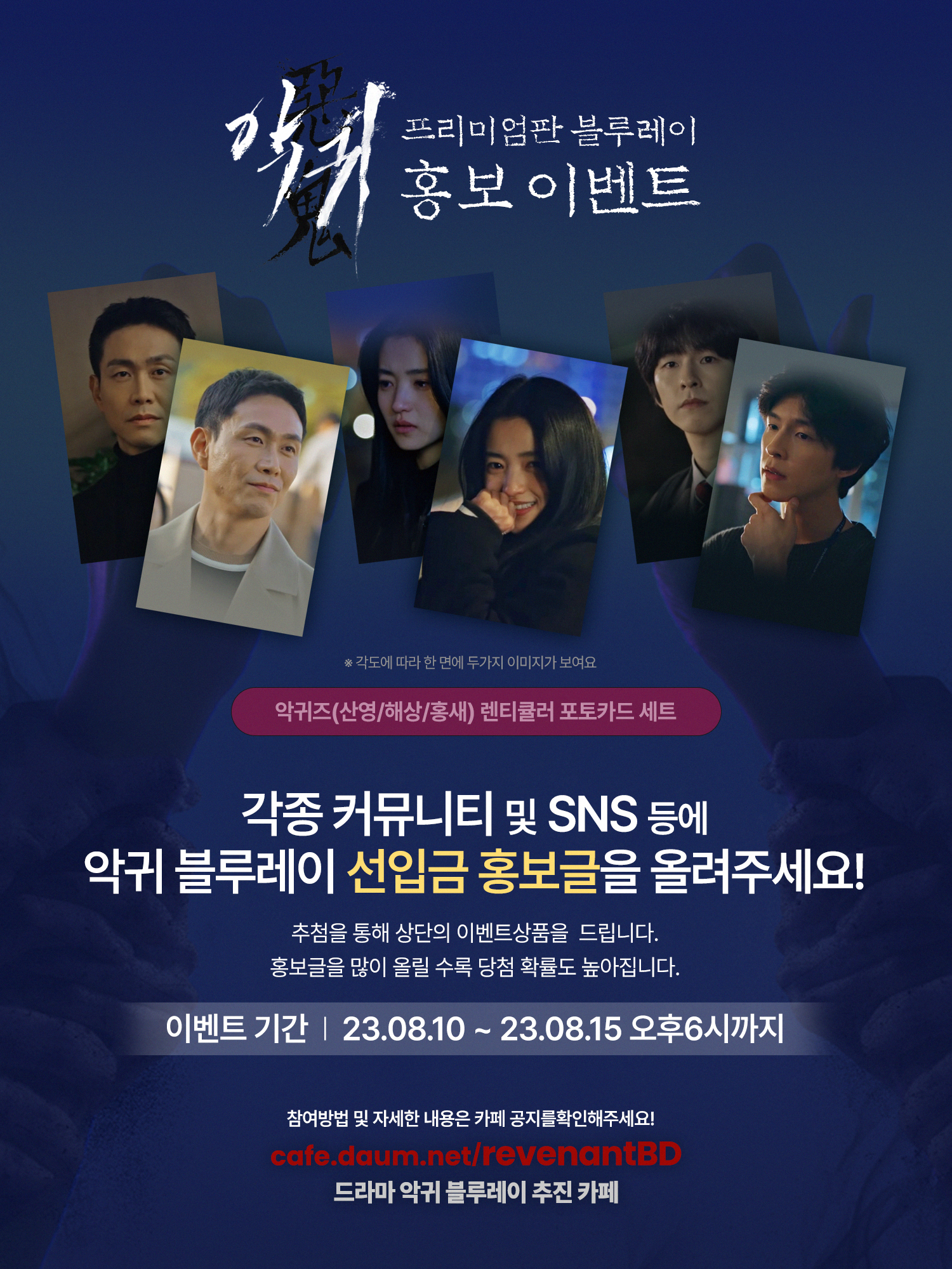 선입금 기간 동안 블루레이 선입금 홍보를 해주신 분들 중 추첨을 통해 악귀즈(산영/해상/홍새) 렌티큘러 포토카드 세트를 드립니다.