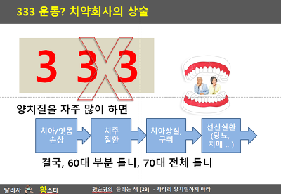 333 즉 하루 3번, 식사후 3분 이내에, 3분 동안 양치질 하라는 것은 치약회사의 상술이랍니다.