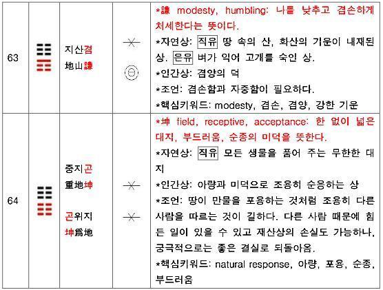 모두 땅을 상징하는 곤괘가 겹쳐서 구성되어 있다. 여섯 효(爻)가 모두 음(陰)으로 만물을 포용하고 양육하는 땅과 어머니를 상징한다. 속성은 ‘순응하다’. ‘지극하다’라는 뜻이다.