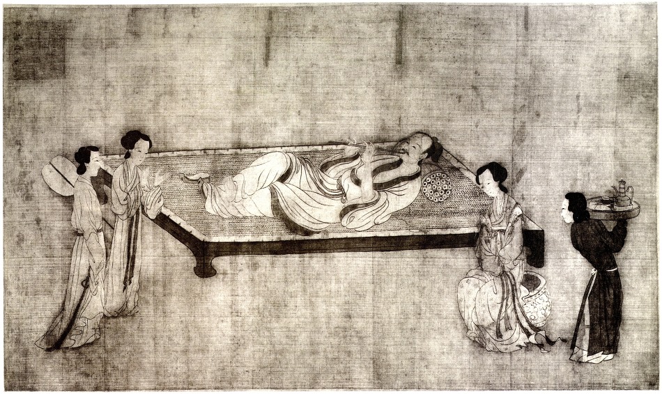 장훤이 그린 <명황합락도(明皇合樂圖)>는 현종이 침상에 누워 퉁소를 불고 있는 모습을 그린 작품이다. 양귀비를 그렇게 보내놓고 그도 힘들었을 것이다. 황위도 양위하고 사랑도 버린 후 현종은 ‘잠 못들고 뒤척거리며 양귀비를 그리워했다’고 한다.(백거이,「장한가」) 백거이를 비롯한 모든 시인들이 양귀비를 욕하고 현종을 동정했다. 정치도 잘하고 현명했던 현종이 어쩌다가 양귀비의 미색에 빠져 정신 못차리고 인생을 망치게 되었는 지 모르겠다는 것이 시인들이 양귀비를 평가하는 일관된 논리다. 그 과정에서 죄 없는 현종은 동정표를 받고 팜므 파탈적인 매력으로 황제를 홀린 양귀비는 죽어 마땅한 죄인으로 전락한다. 전형적인 마녀사냥이다.