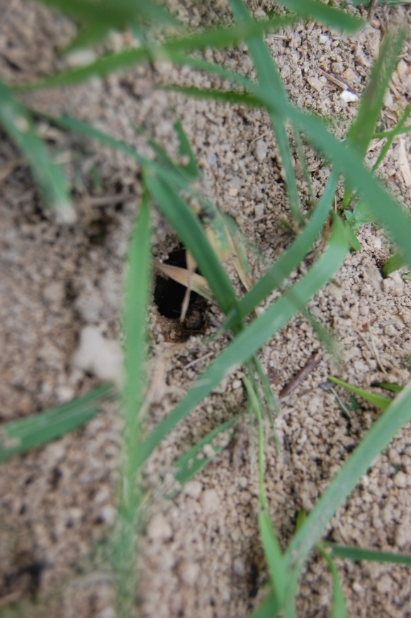 젖은 흙을 물어 밖으로 내뱉고 있는 중입니다.