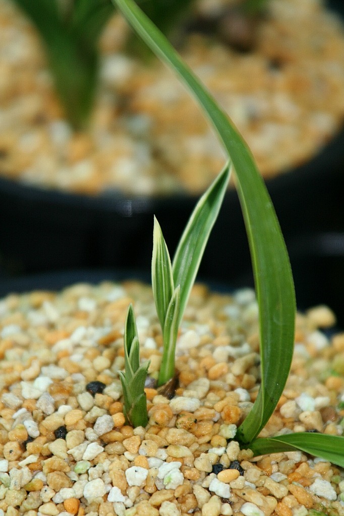 모촉의 잎 선단에 한줄 편호처럼 걸쳐 있던곳에서 몇번의 작출 작업끝에 복륜을 올리고 올해는 첫 촉이 바로 복륜으로 고정되어 올라 왔습니다. 모촉이 작출 작업으로 몸살을 좀 하여서 인지 신아가 짤록병으로 보이는 기질을 보이는 것 같습니다. 무탈하게 잘자라야 하는데... 이제 종자의 시작입니다. 세력이 안정되면 잎의 성질 만으로도 멋진 모습을 보여 줄것이라 봅니다.