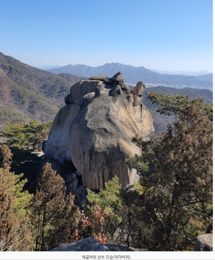 | 산행코스 | 용덕사입구~해골바위~거북바위~코끼리바위~영봉~하루재~우이령 탐방지원샌터 (약6.5km 5시간) |