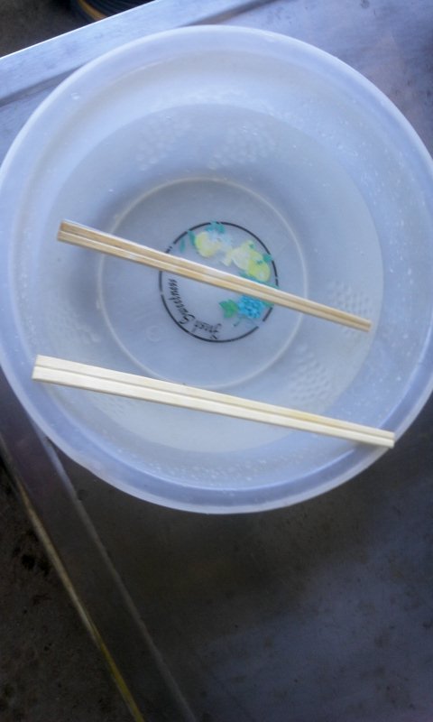 (2)마이탁1:물1로 섞어서 나무젓가락을 2일간 푹 담구었다가 빼내 약액이 흐르지 않도록 살짝 말려서