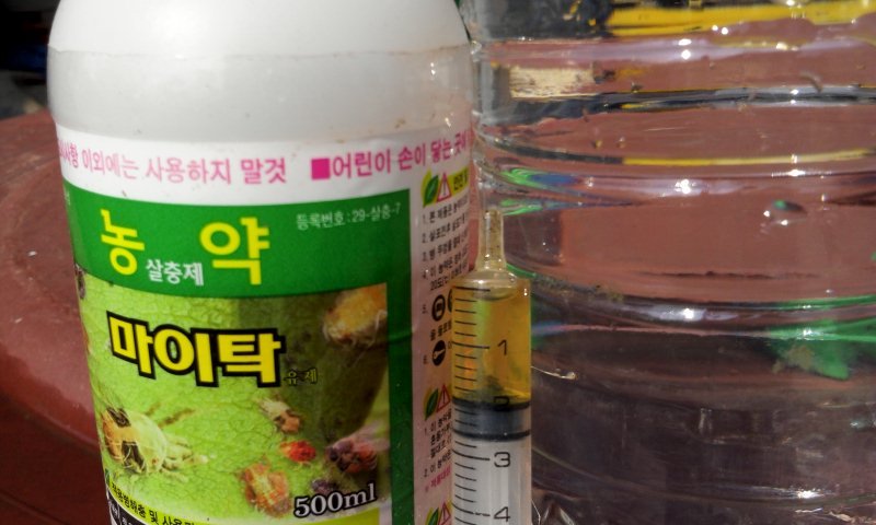 (4)마이탁을 휘산으로 응애를 잡으려 할적엔 병이 용기가 단단해야 합니다.