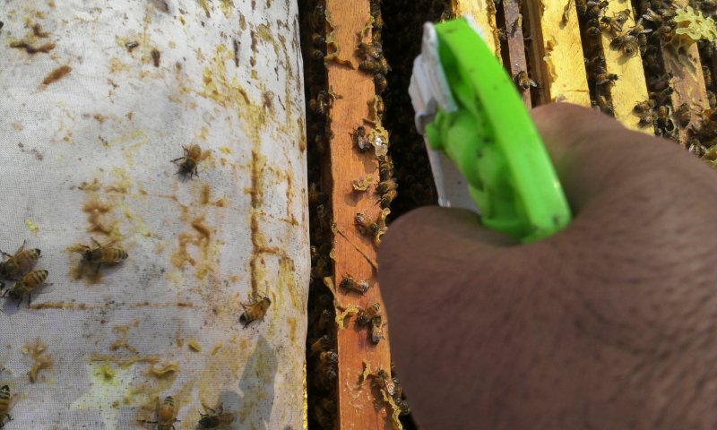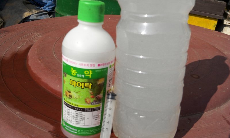 (1)2mml를 주사기로 빼내어 물 1.8L에 희석해 분무를 해줘도 벌은 죽지않고 응애를 잡습니다.