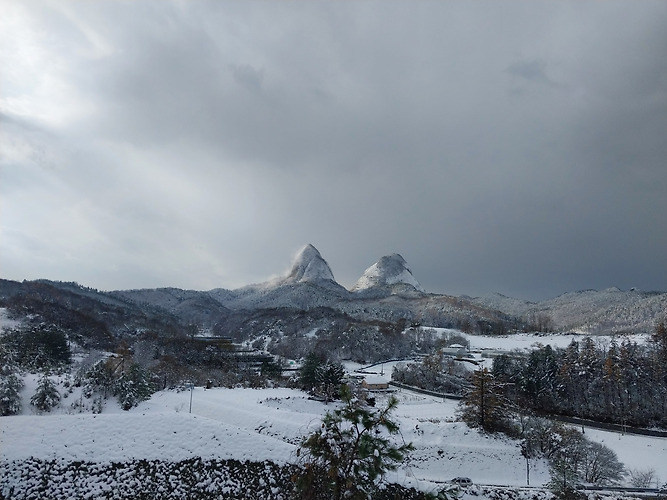어제 대구에서 오셔서 화분떡 갖어 가시며 눈내린 마이산을 찍어 주셨습니다.