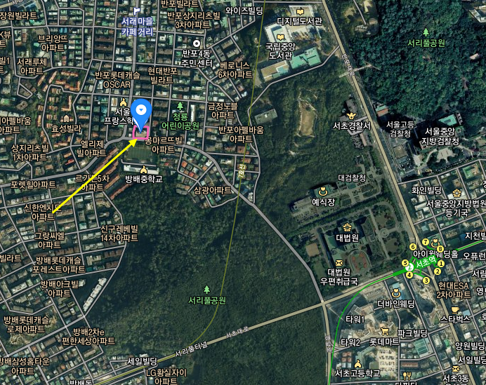 | 환경 | ㆍ서래마을카페거리(346m)ㆍ서리골서리풀나들길(378m) |
