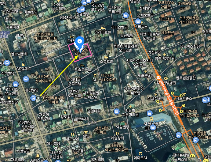 | 공공 | ㆍ서초3동주민센터(325m)ㆍ서초3동자치회관(331m)ㆍ서초파출소(369m) |