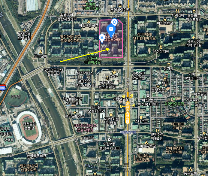 | 공공 | ㆍ야탑1동 행정복지센터(452m)ㆍ성남시청(500m)ㆍ야탑지구대(649m)ㆍ야탑2동 행정복지센터(671m)ㆍ야탑119안전센터(758m) |
