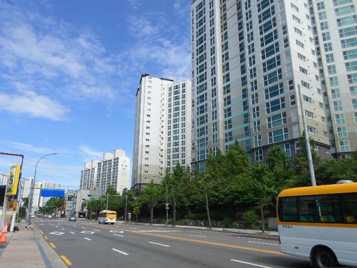 주위는 아파트단지, 근린생활시설, 학교 등이 혼재.