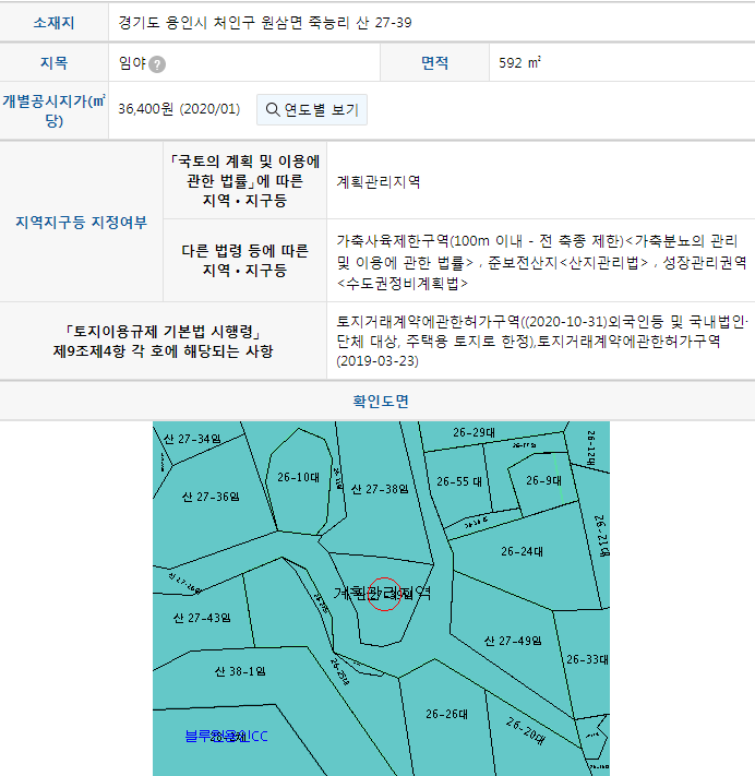 [소재지 : 경기 용인시 처인구 원삼면 죽능리 산27-39. 임야179평]