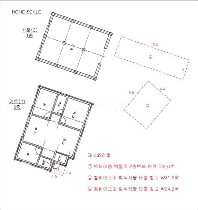 - 2. 제시목록 2의 현황은 등기부상 표시와 같이 주택 및 창고로 이용되고 있음