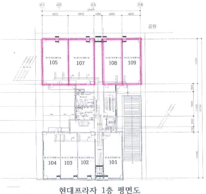 - - 임차인 박인우가 제출한 105호, 108호 분양계약서에는 분양면적에 대지지분도 포함되어 있음. 107호 분양계약서는 가지고 있지 않으며, 109호는 분양이 되지 않았다고 함.
