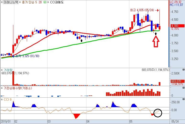 5.공략 방법 : CCI탈출 일봉발생후 30분봉에서 추세선 돌파(또는 60선)하고 눌림에서 매수