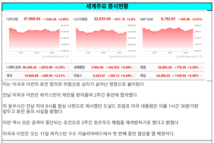 미 증시 요약입니다 작성자미사일|작성시간26.04.09|조회수28 목록 댓글 6 글자크기 작게가 글자크기 크게가 다음검색 현재 게시글 추가 기능 열기 북마크 공유하기 신고 센터로 신고 댓글 댓글 6 댓글쓰기 답글쓰기 댓글 리스트 작성자잉꼬의행복 | 작성시간 26.04.09 감사합니다 작성자뽕우리 | 작성시간 26.04.09 감사합니다 작성자머니여신 | 작성시간 26.04.09 감사합니다 성투하세요 작성자황금알 h | 작성시간 26.04.09 감사합니다 작성자배지니 | 작성시간 26.04.09 감사합니다. 댓글 전체보기