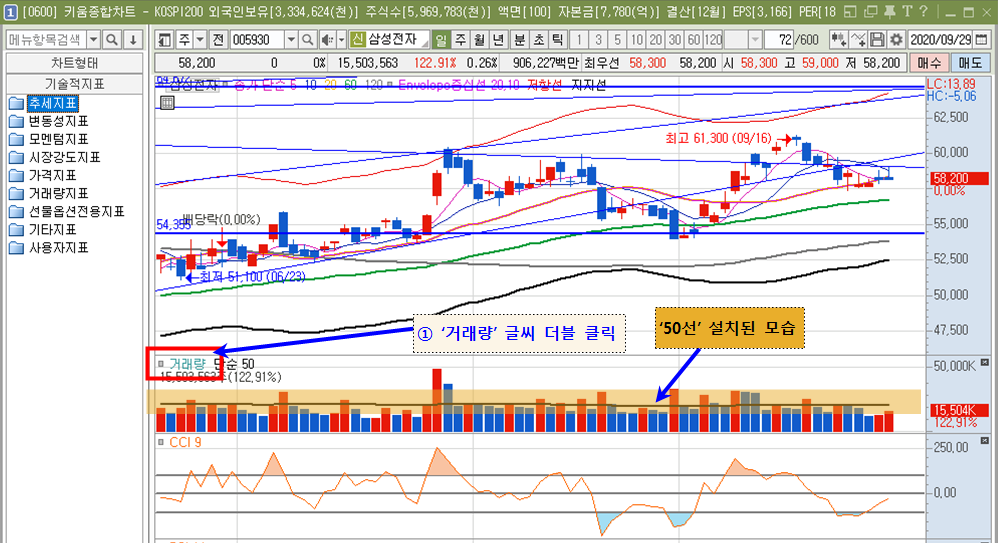 2. 거래량에 50선 설치하기(PC 버전)