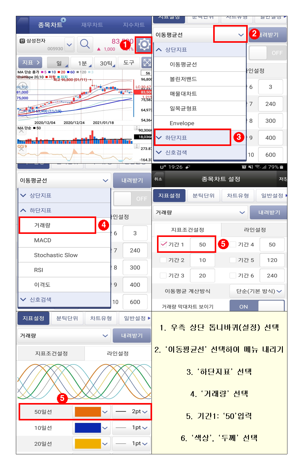 3. 거래량에 50선 설치하기(휴대폰 버전)