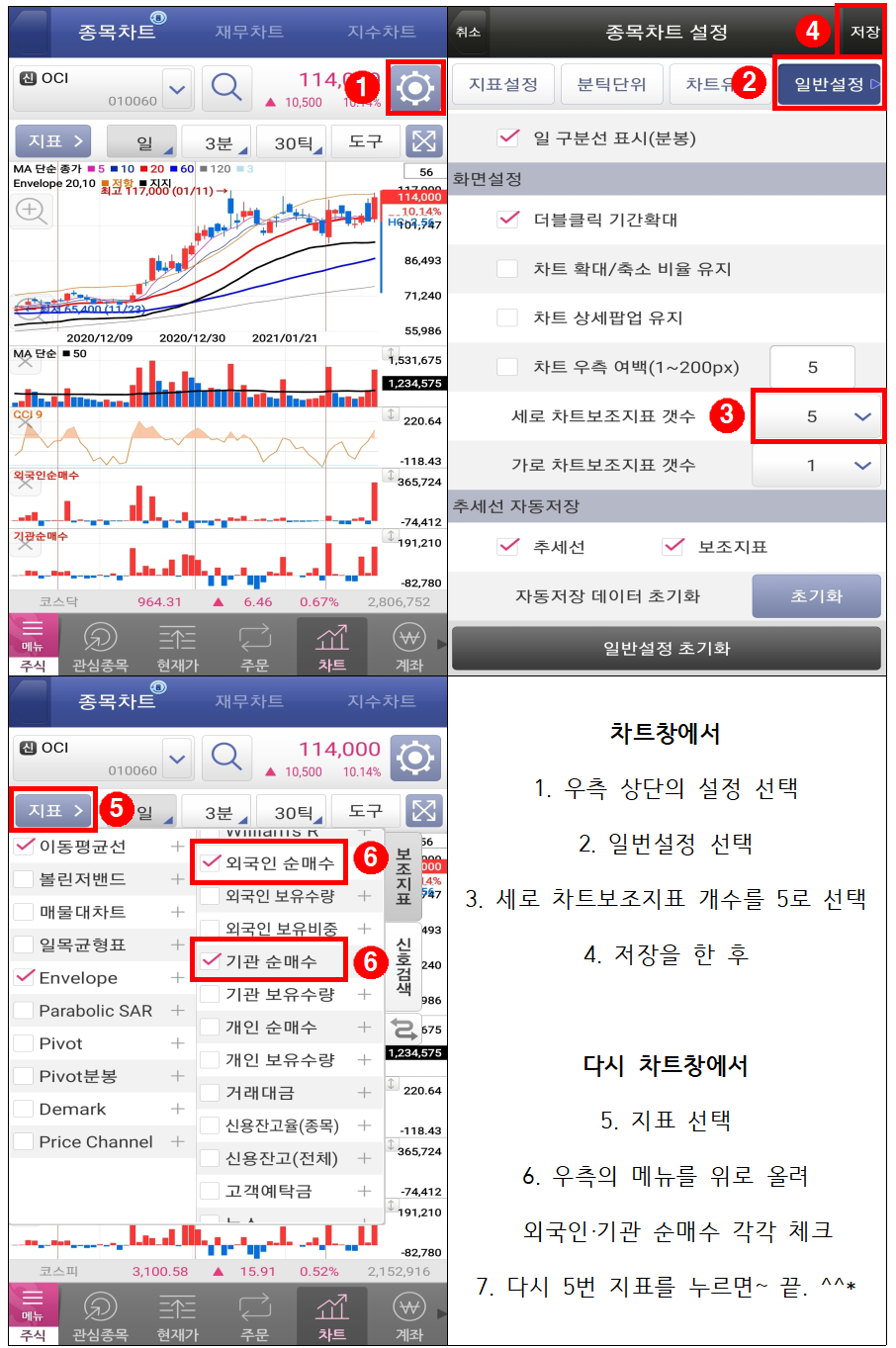 5. 외국인·기관 순매수량 지표 추가하기(휴대폰 버전)