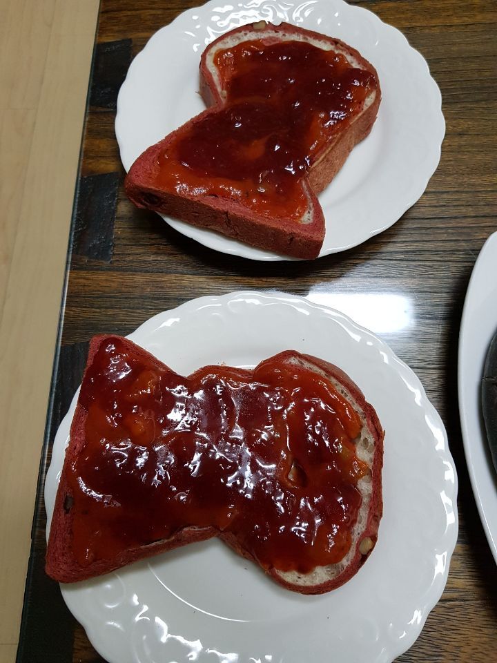 잼은 굳이 펴바르지 않고, 그냥 떨어뜨린 채로 두셔도 괜찮아요.