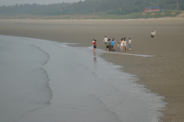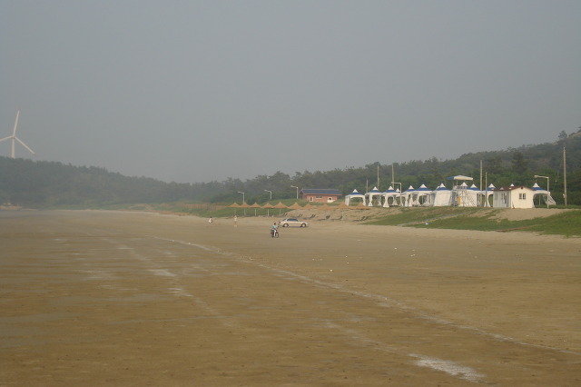 방조제 좌측은 뻘, 우측은 모래(해수욕장)