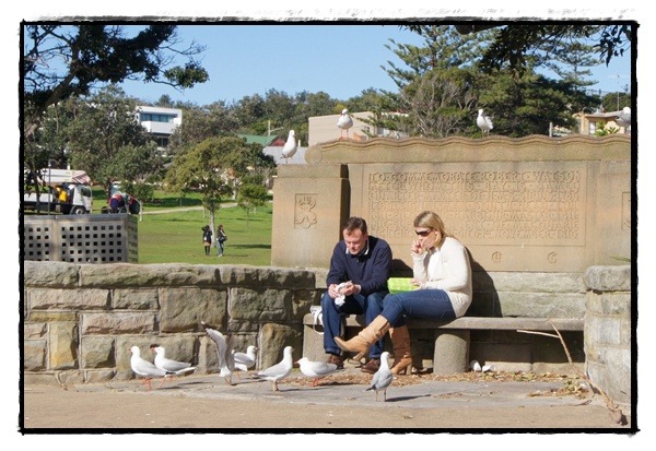 커플의 머리위에서 호시탐탐 빈틈을 노리고있는 갈매기들..