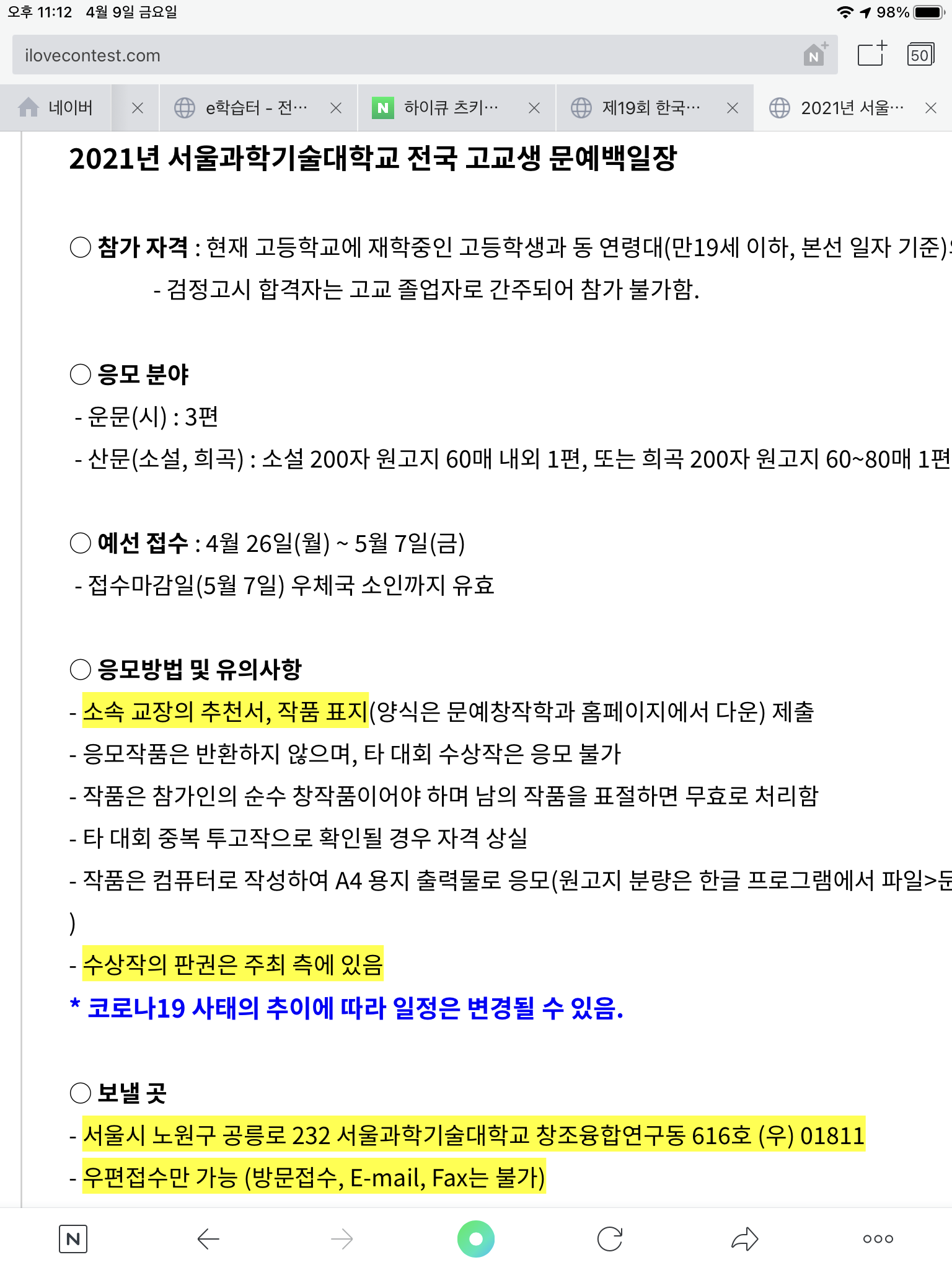 [문학특기자]서울과학기술대학 _ 5월 7일 작성자깨달음을 얻는 자|작성시간21.04.09|조회수6 목록 댓글 0 글자크기 작게가 글자크기 크게가 다음검색 현재 게시글 추가 기능 열기 북마크 공유하기 신고 센터로 신고 댓글 댓글 0 댓글쓰기 답글쓰기 댓글 리스트