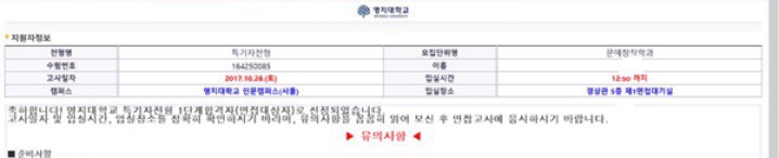 [축 합격]명지대학교 문예창작과 특기자 전형 수시 1차 합격 작성자깨달음을 얻는 자|작성시간17.10.25|조회수86 목록 댓글 0 글자크기 작게가 글자크기 크게가 명지대학교 문예창작과 특기자 전형 수시 1차 합격 다음검색 현재 게시글 추가 기능 열기 북마크 공유하기 신고 센터로 신고 댓글 댓글 0 댓글쓰기 답글쓰기 댓글 리스트