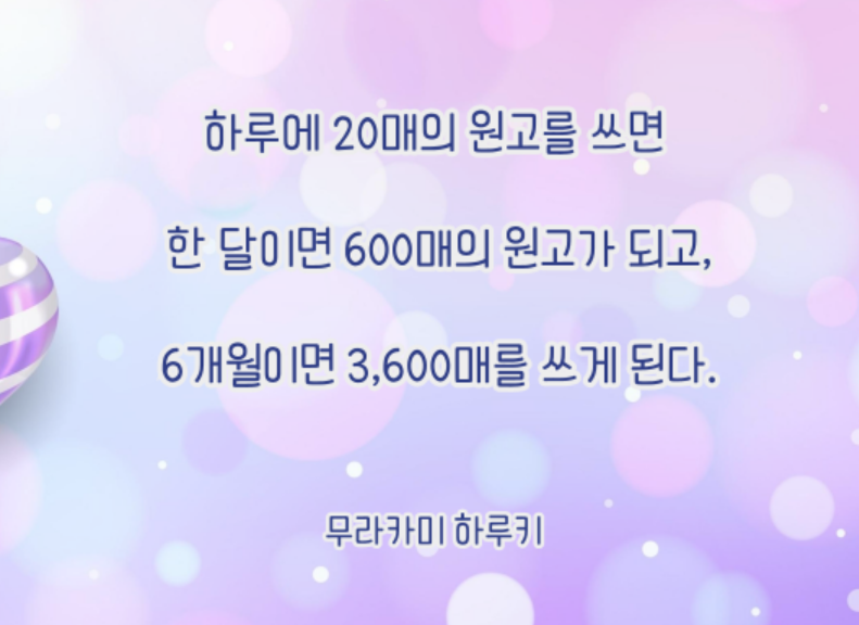 사람들은 책 읽는 것을 대부분 싫어하고 무엇인가를 만드는 것을 싫어한다. 그래서 나는 이와 같은 시대 속에서 꾸준함을 밑바탕으로 독서와 글쓰기를 이어갈 생각이다.