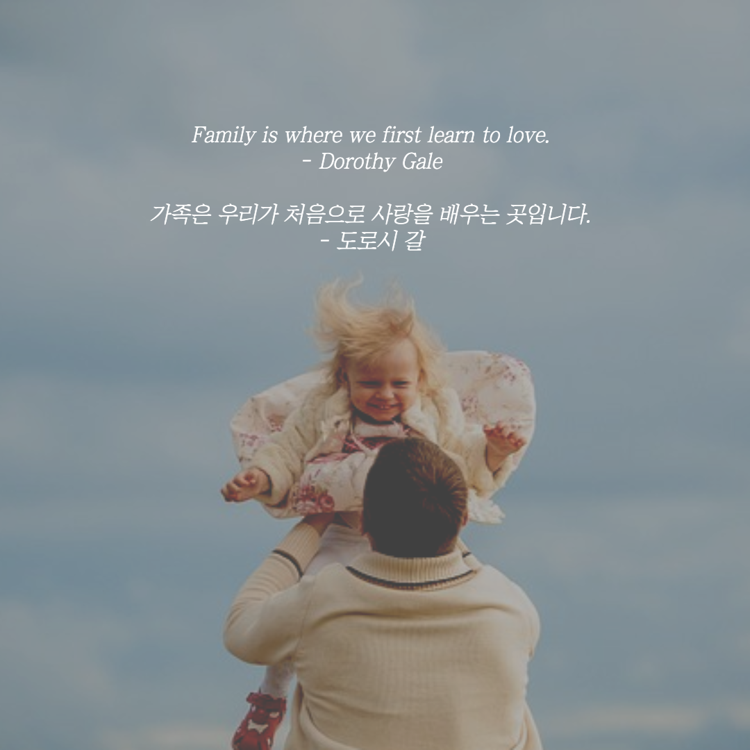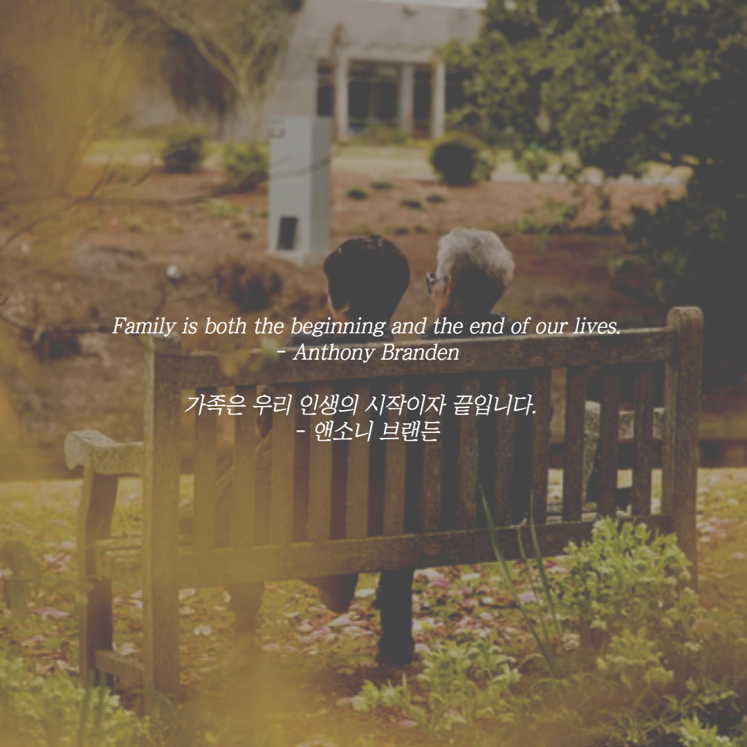 가족은 그런 것 같습니다. 형이 못하면 동생이 동생이 부족하면 형이 자식에게 허물이 있으면 부모가 부모님이 연세가 들면 자식이 그렇게 서로 감싸며 평생 행복을 만들어 가는 것. 가족은 그런 것 같습니다. –좋은 글 중에서–