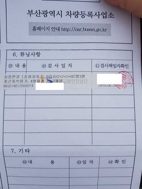 부산 주례검사소에서 자동차구조변경