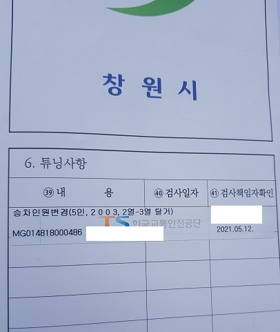 자동차등록증에 구조변경 인승변경내용 찍히고