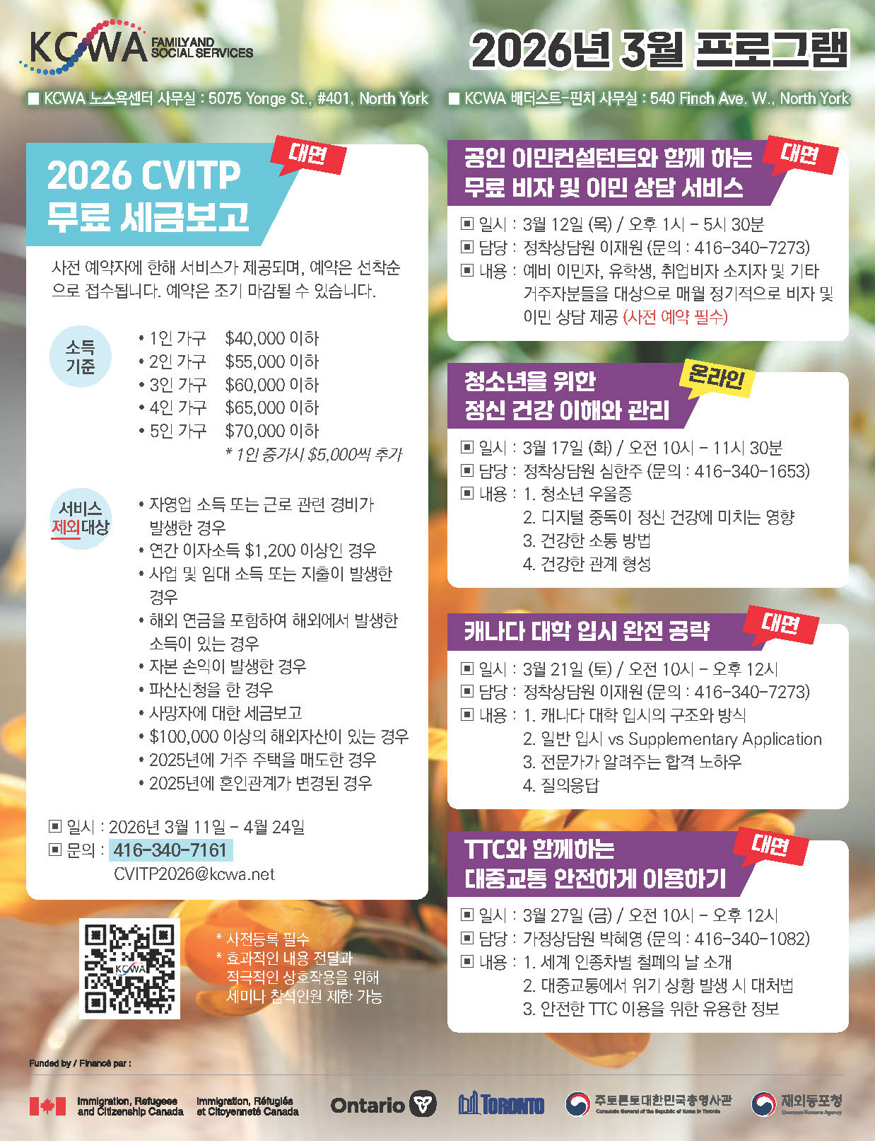 문의: 416-340-1234 또는 kcwa@kcwa.net